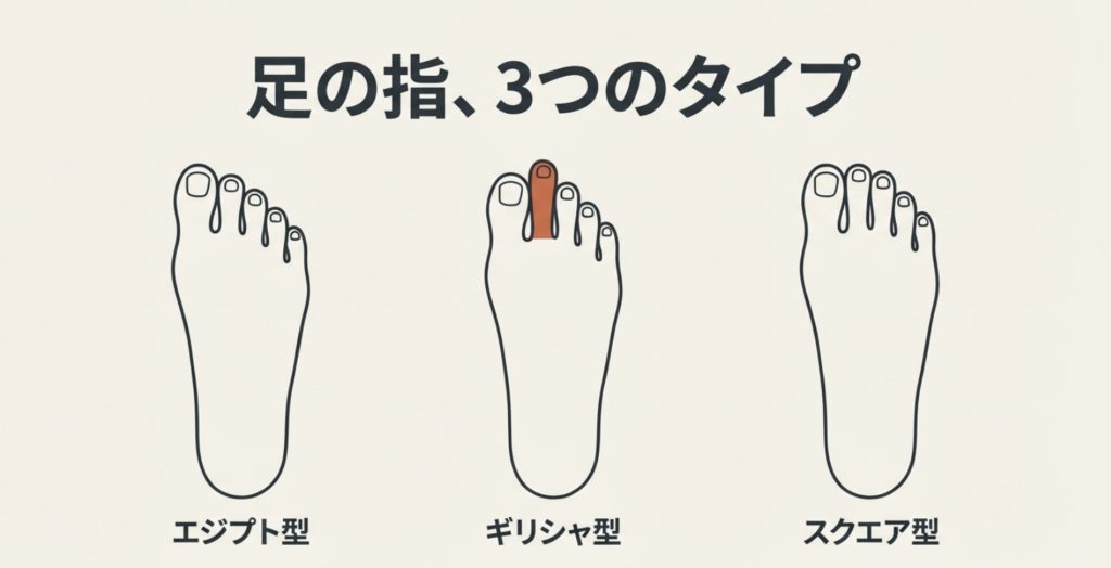足の指の形は、大きく分けて3つのタイプに分類されます。